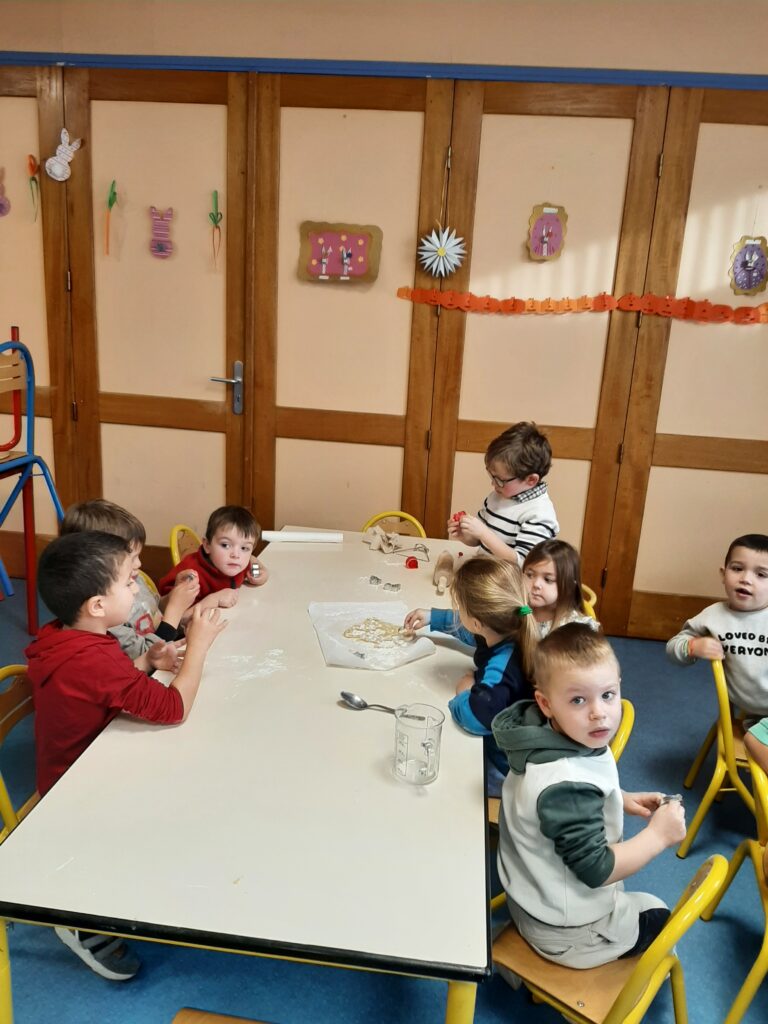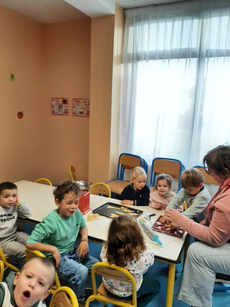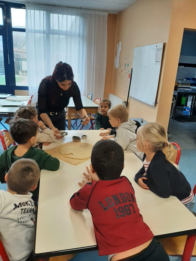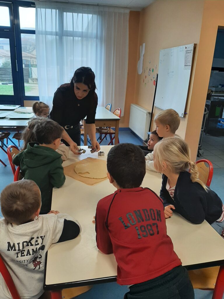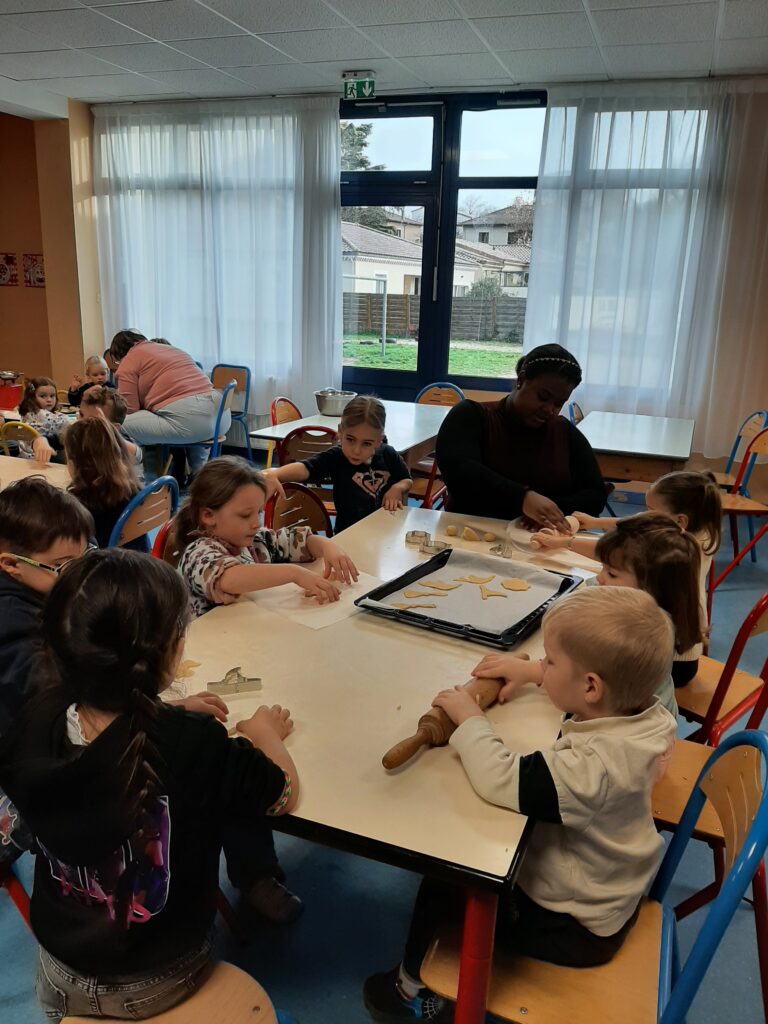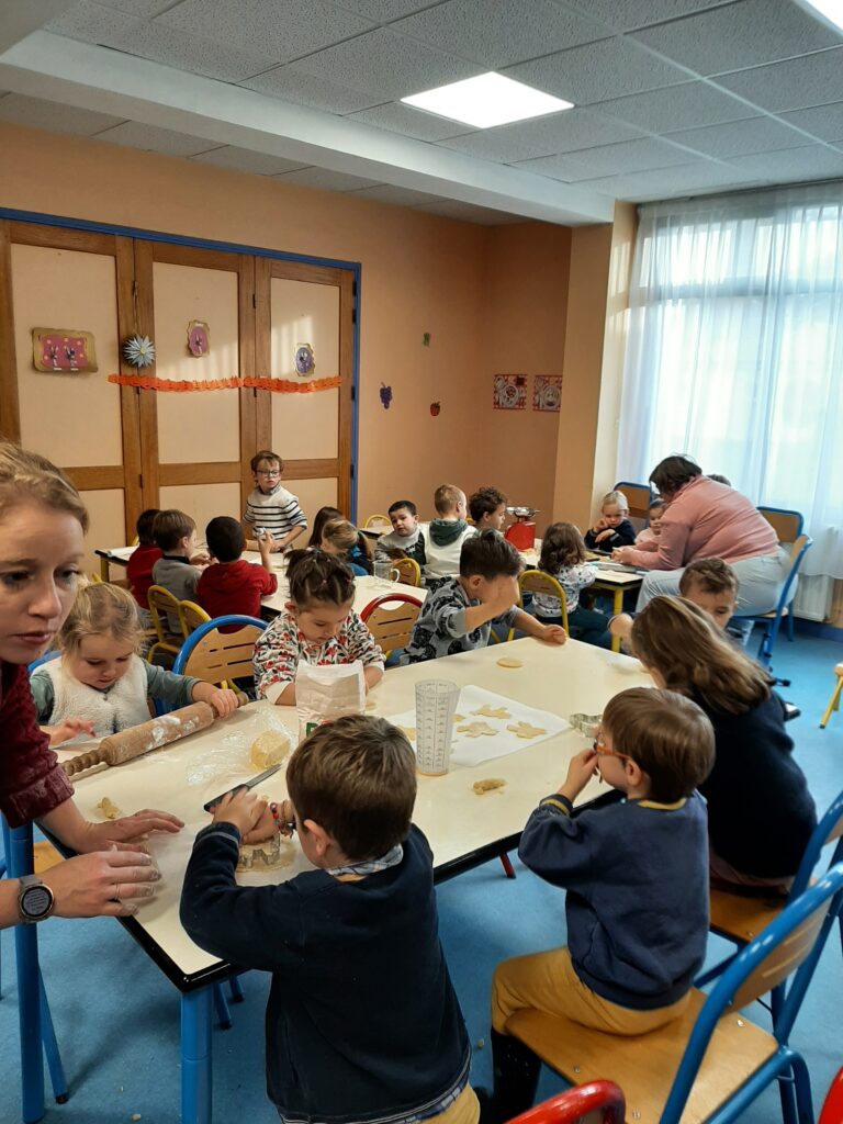 Jeudi 20 novembre, nous avons commencé nos ateliers pâtisserie. Direction la cantine avec les mamans d’Ayden, Antoine et Adrien pour la fabrication de sablés.