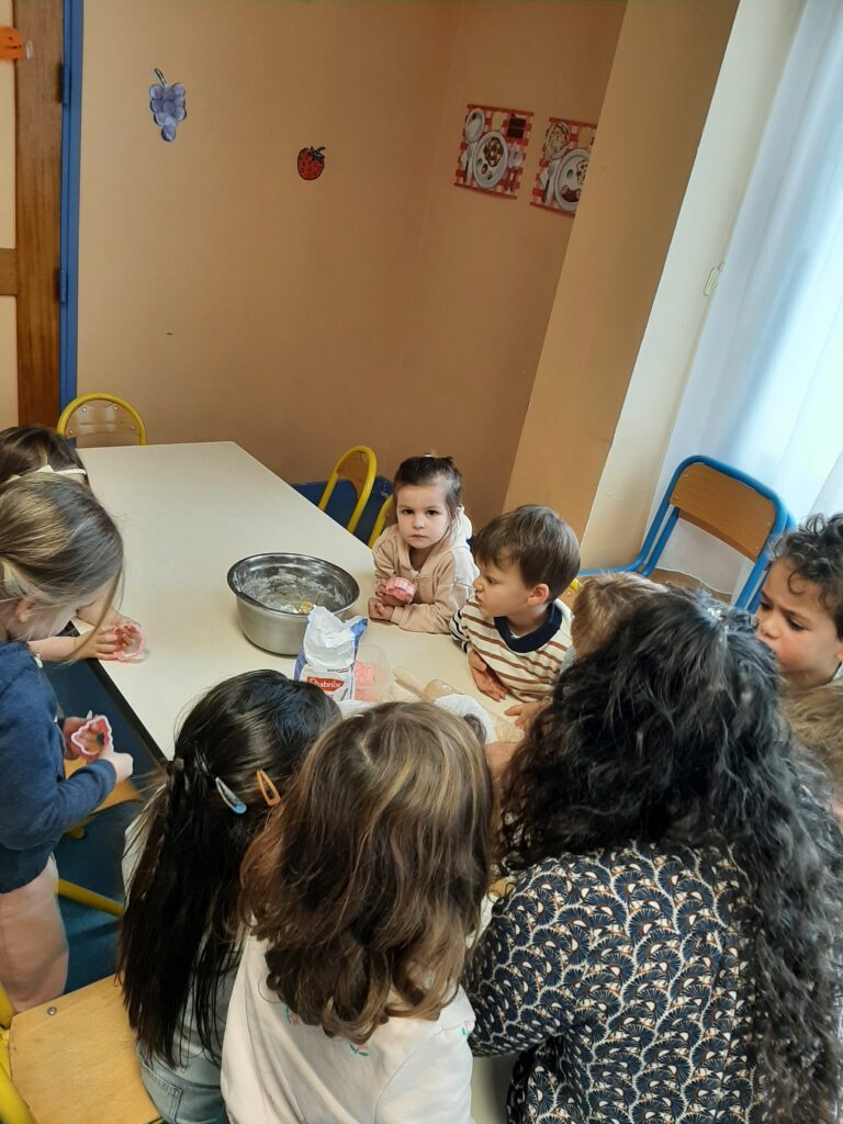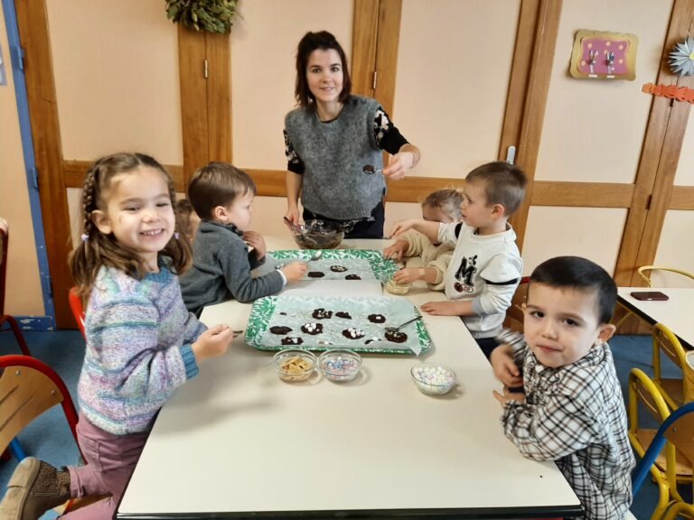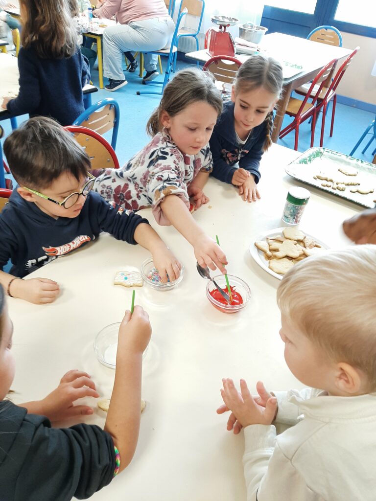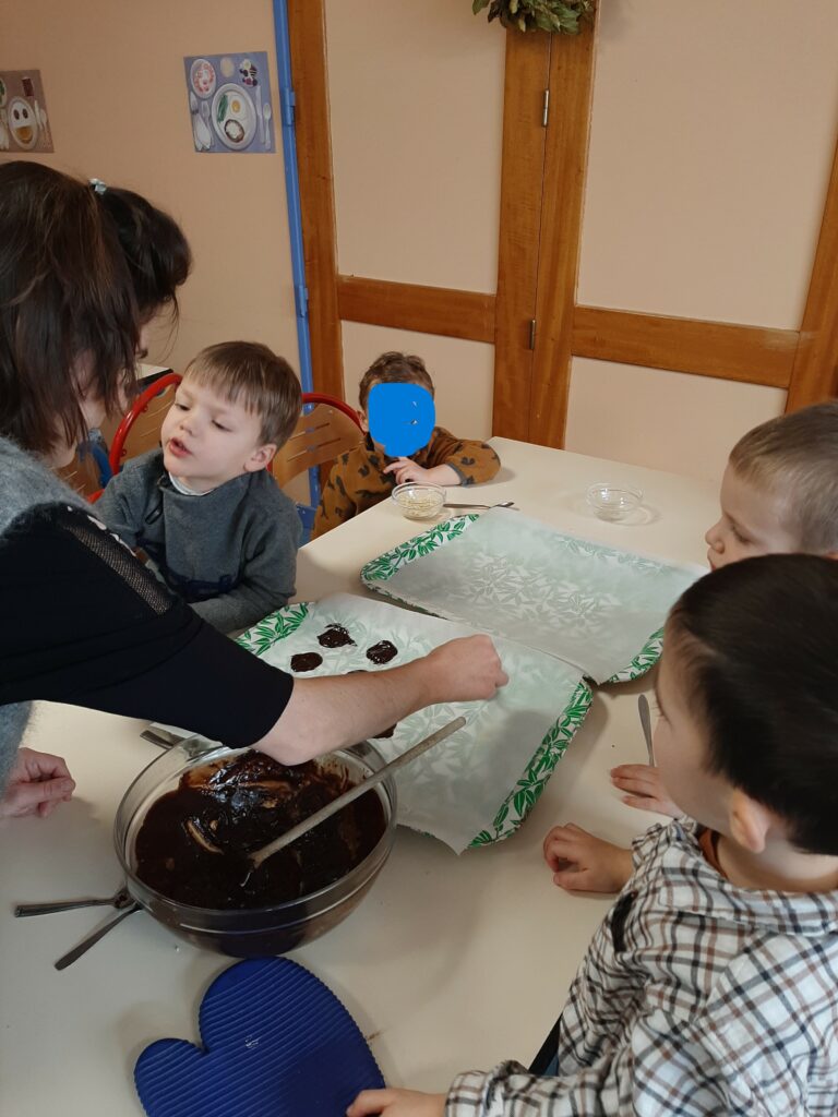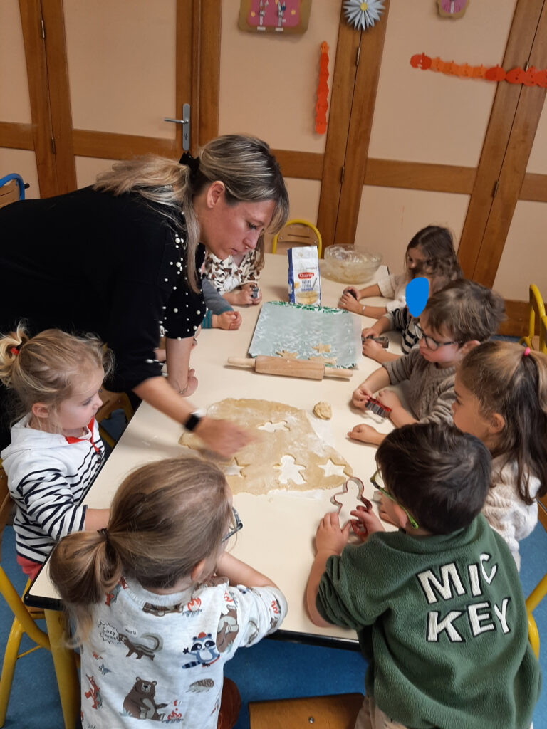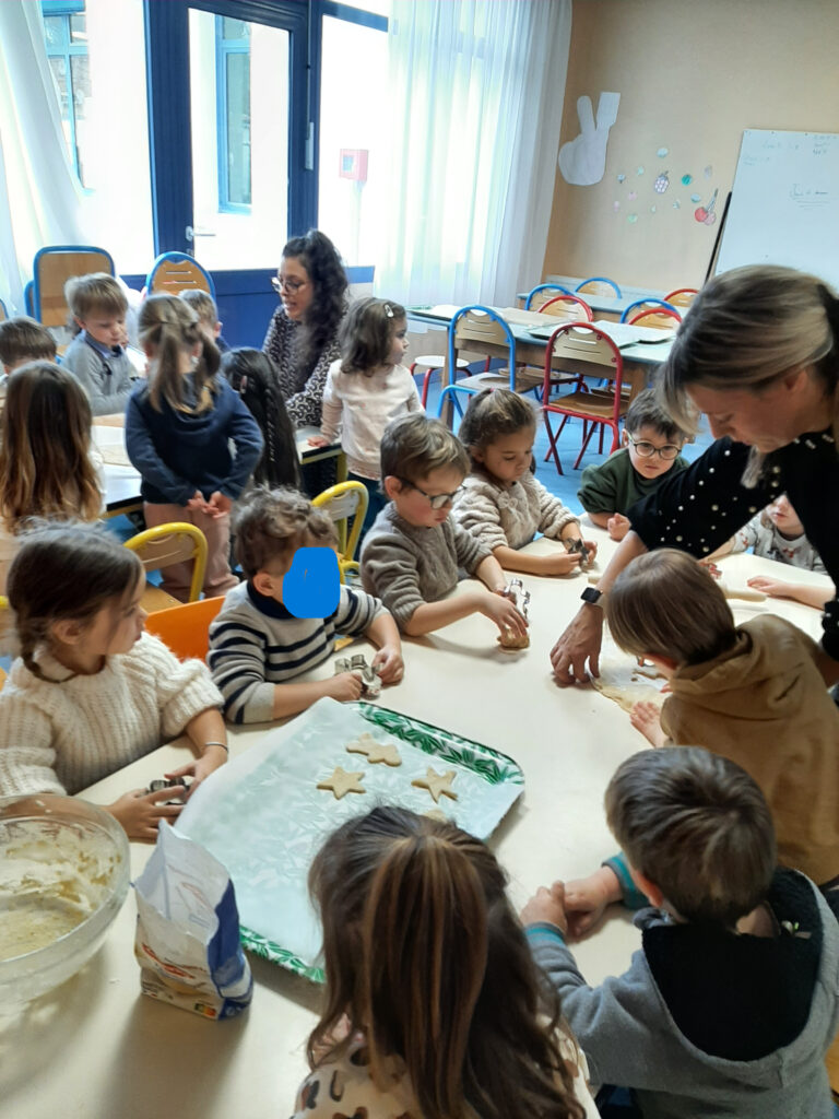 Jeudi 20 novembre, nous avons commencé nos ateliers pâtisserie. Direction la cantine avec les mamans d’Ayden, Antoine et Adrien pour la fabrication de sablés.