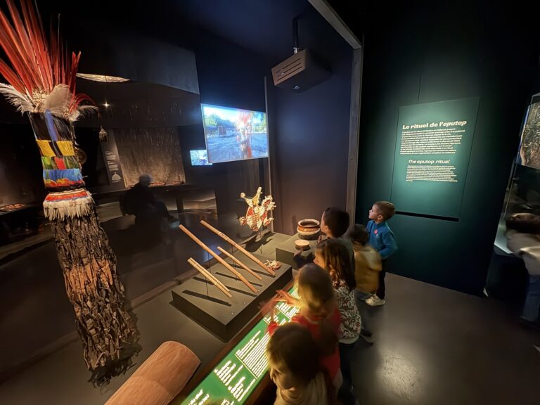 AprĂšs un bon pique-nique et nos forces retrouvĂ©es, nous sommes partis pour la visite de lâexposition sur les Indiens dâAmazonie đżđȘ¶
