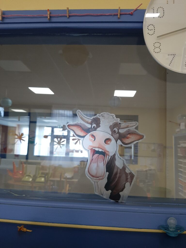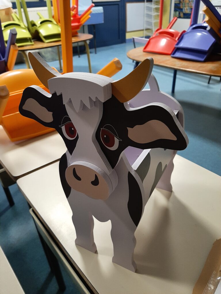Notre petite vache s’appelle Valentine 💛, en lien avec notre prochaine sortie : la visite de la ferme du Valentin le 10 mars.