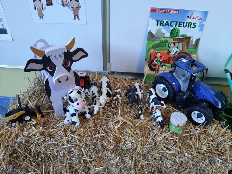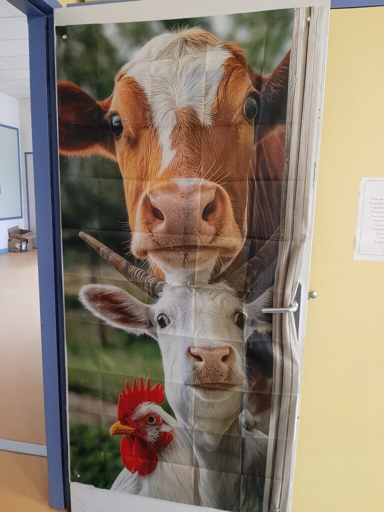Au retour, les enfants ont découvert leur classe métamorphosée avec des animaux, des tracteurs, des vaches 🐄, des cochons 🐖… Une immersion totale dans l’univers de la ferme !