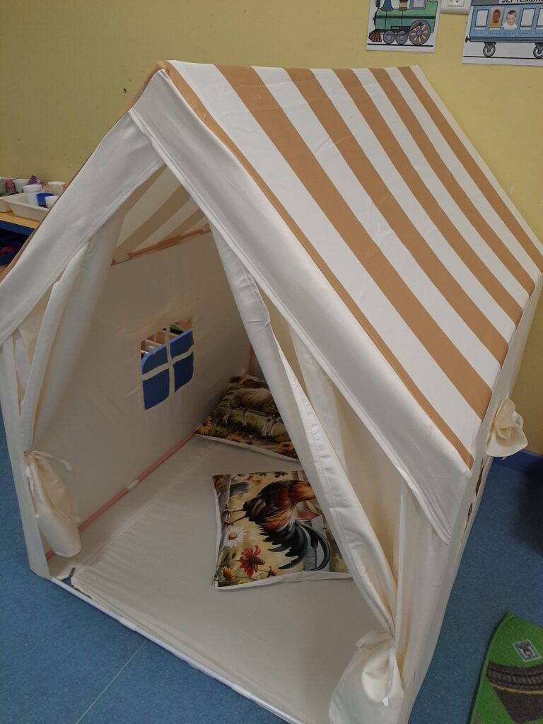 Durant les vacances, la décoration de la classe a été entièrement transformée et le papa de Marius nous a même apporté de vrais ballots de paille ! 🌾